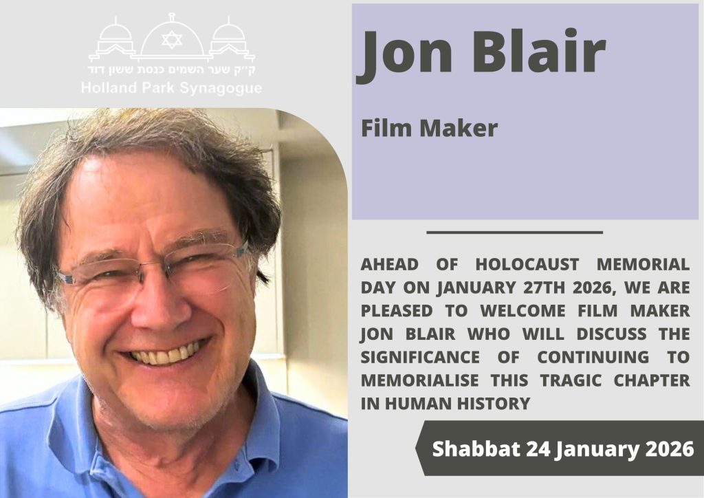 Shabbat morning service followed by a talk given by Jon Blair ahead of Holocaust Memorial Day.